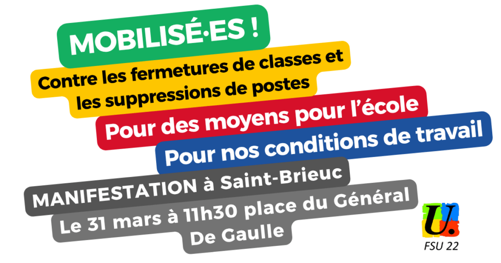 Carte scolaire et conditions de travail : tou·tes en grève et en manifestation intersyndicales le mardi 31 mars !